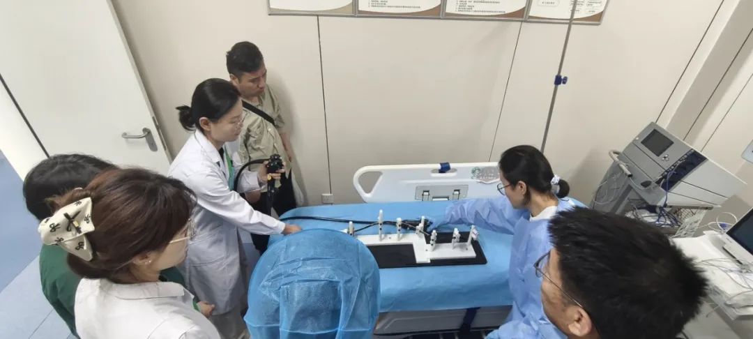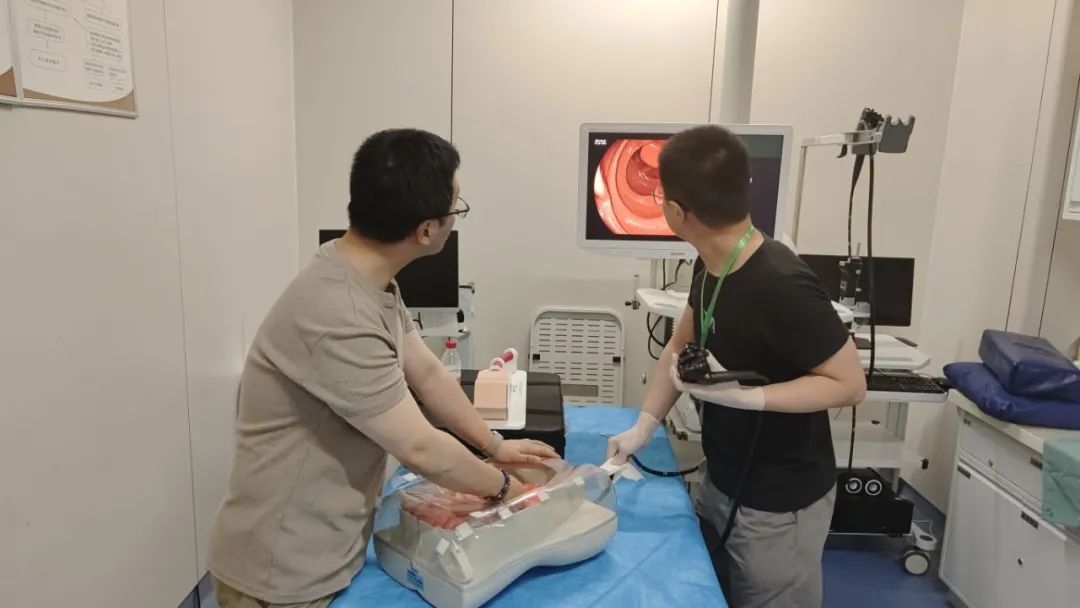 内镜实操环节,呼和浩特市第一医院消化内镜中心为学员提供了上消化道及下消化道高清仿真消化内镜模型。随着导师的操作示范,他们争相举手申请实操机会;内镜缓缓探入模拟器中,有人屏息调整角度,有人手持操作柄沉稳进镜,在热烈的讨论声里,满是对技术精进的渴望。