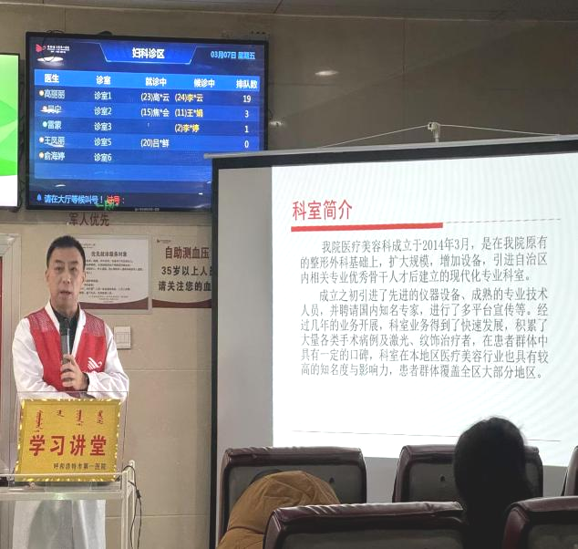 妇科副主任医师雷蒙以《宫颈癌与HPV》为讲座内容,系统阐释了早期筛查的必要性、HPV感染的防治方法及疫苗选择标准,倡导女性应重视健康并采取科学预防措施。甲乳疝外科连红霞主任医师以《哺乳期乳腺炎》为主题,从病因分型到科学干预,为新手妈妈们提供实用指导,帮助化解哺乳期困扰。医疗美容科谢靖宇主任医师通过具体案例,详细介绍了医疗美容科的业务范围,除常规的美容外科业务,在整形外科业务方面有了一定积累。科室在本地区医疗美容行业也具有较高的知名度与影响力。