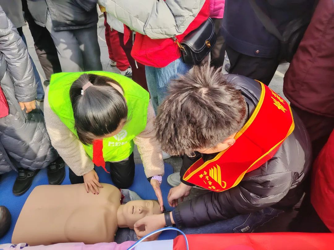 “心手相连,点亮生命”心肺复苏培训志愿服务队以现场教学与模拟演练相结合的形式,详细讲解了“心脏复苏”的重要性,利用模拟人教具现场模拟了心肺复苏的施救过程,确保居民在真正遇到紧急情况时能够迅速、准确地进行急救。