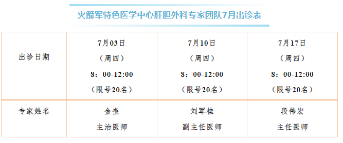 倾力打造首府地区肝胆胰脾复杂疑难疾病诊疗高地——火箭军特色医学中心肝胆外科专家7月出诊信息