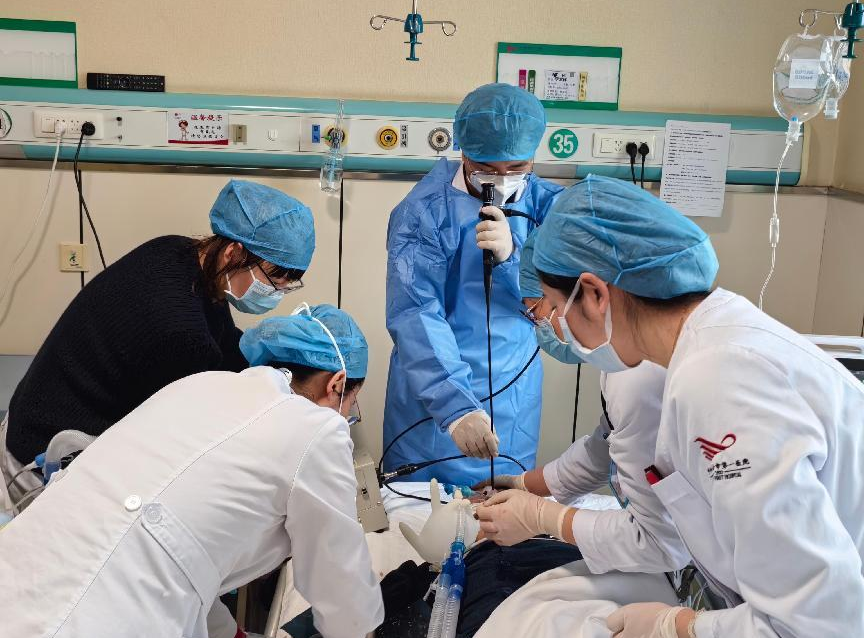 目前不仅开展常规、无痛气管镜检查,而且开展了经支气管针吸活检术(TBNA)、超声内镜引导下经支气管针吸活检术(EBUS-TBNA)、经支气管镜肺组织活检术(TBLB)、硬镜下气道内肿物开通术(激光、氩气、电切、冻切等)、气道瘢痕狭窄切开松解术、支气管异物取出术、气道狭窄球囊扩张术及冷冻术,硬镜下气道支架植入术,胸膜瘘修补术、内科胸腔镜、小儿支气管镜、快速现场细胞学评价等呼吸介入领域的高难度技术,其中多项呼吸内镜下介入手术填补了内蒙古自治区的空白。短短5年时间,气管镜总例数已达7800余例,三、四级手术达1850余例,处于内蒙古自治区领先水平。在业务技术上,不断拓展提高,2023年开展LungPro导航引导下肺外周病灶气道内活检术,2024年放置Y型支架3例,并开展光动力治疗,标志着我基地呼吸介入技术再上新台阶。