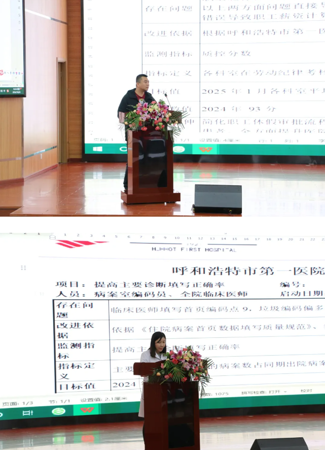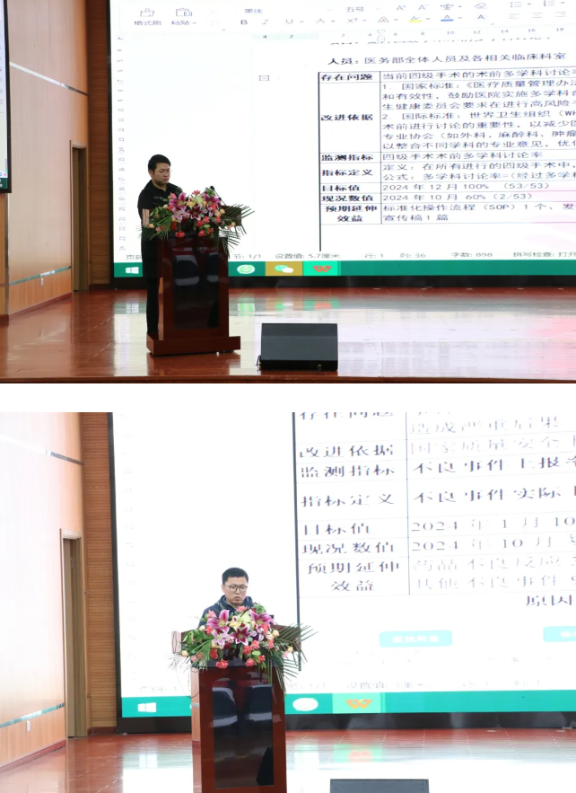 经过一天的学习后,10月20日上午,医务、病案、人事、药剂等科室及医联体代表单位托克托县医院上台,为大家进行PDSA项目汇报,展示前一天的学习成果,同时,张勤老师还鼓励参训人员积极参与到每个项目的点评中,互相交流学习,这种互动式的培训方式不仅增强了培训效果,还促进了医护人员之间的交流和合作。