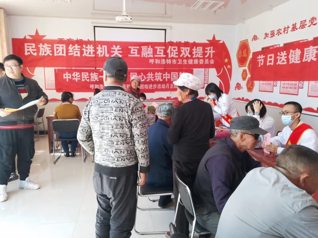 由血液内科、消化内科、神经外科、骨关节科、中医科、放疗科、超声医学科等医护人员组成的医疗专家团队,为村民们免费开展了血糖测试、测量血压、用药咨询、彩超检查,发放健康宣教手册60余份;同时结合民族团结进步宣传月,进行了“铸牢中华民族共同体意识”相关民族政策、法律法规的宣传。