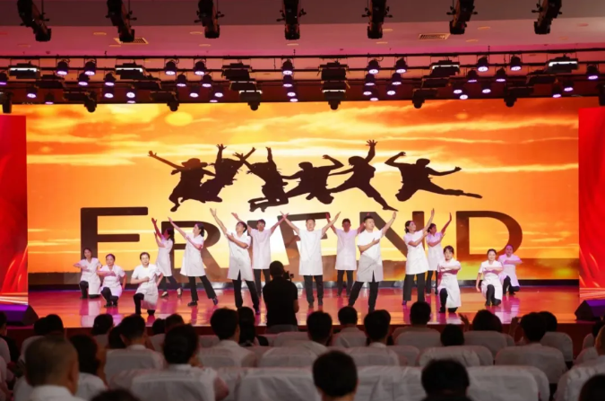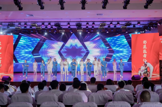 动感十足的舞蹈串烧、惟妙惟肖的小品情景剧、动静相宜的古典舞、铿锵有力的大合唱......,平日里身穿白大褂的医生们,放下手术刀,摘下听诊器,从病房来到了舞台,自编自导,载歌载舞,庆祝属于自己的节日。活动现场有欢歌笑语,也有温馨和感动。