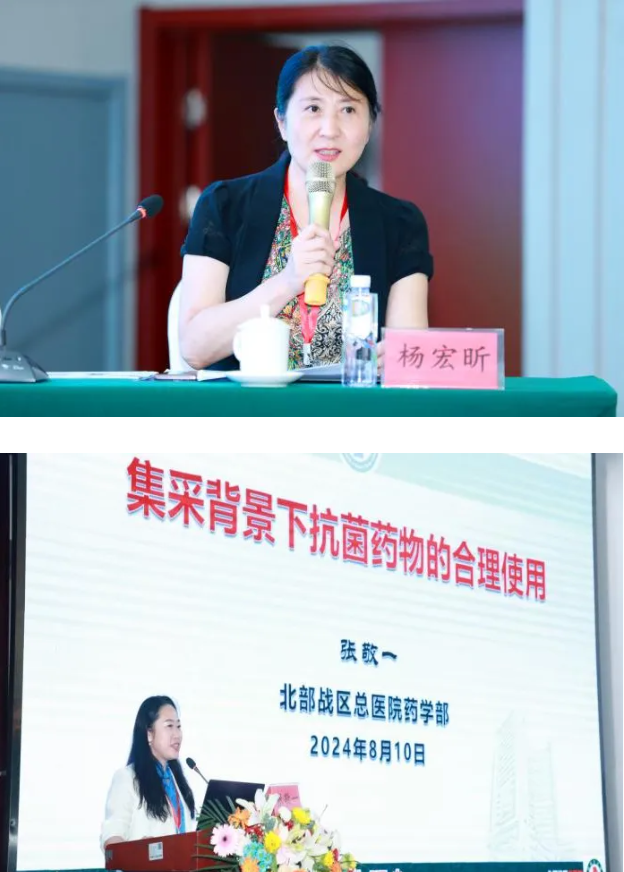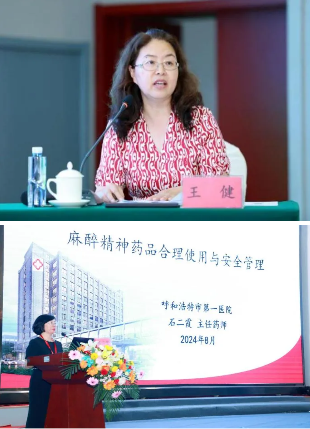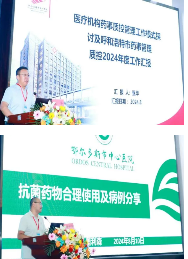 在学术交流环节,呼和浩特市药事管理质控中心主任委员、呼和浩特市第一医院药剂科主任甄华,北部战区总医院临床药学科主任张敬一,北京四季青医院药学部主任高佳丽,自治区人民医院药学处调剂科副科长杨乾,呼和浩特市第一医院药剂科副主任石二霞,鄂尔多斯中心医院临床药师董利森分别就医疗机构药事质控工作开展情况、集采政策下抗菌药物合理使用、基层药师工作模式探讨、处方质量与规范化评价工作、麻醉精神药品合理使用与安全管理、抗菌药物合理使用及典型案例分享等方面作交流发言。