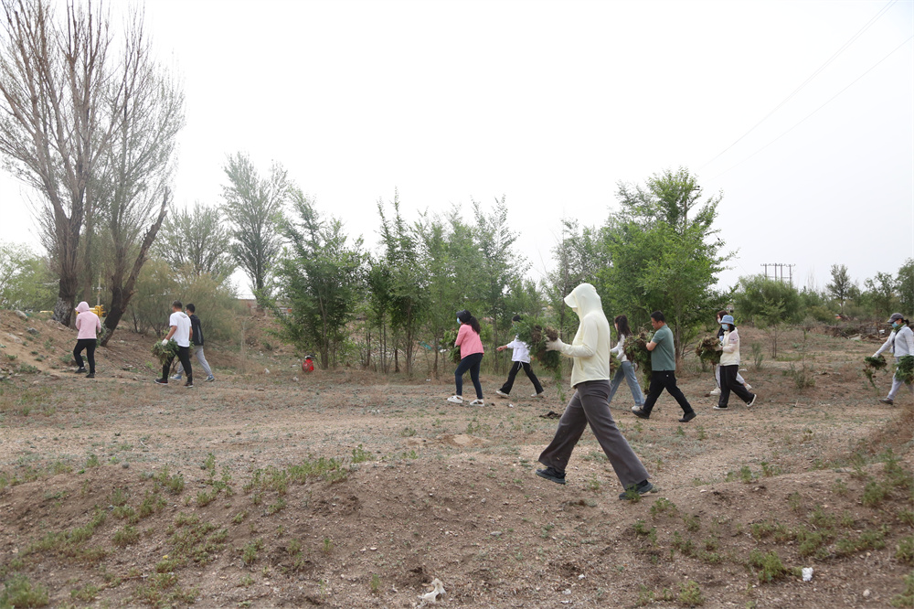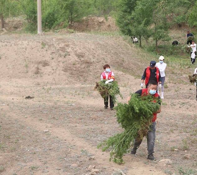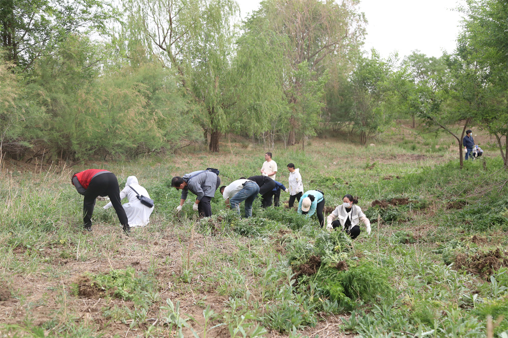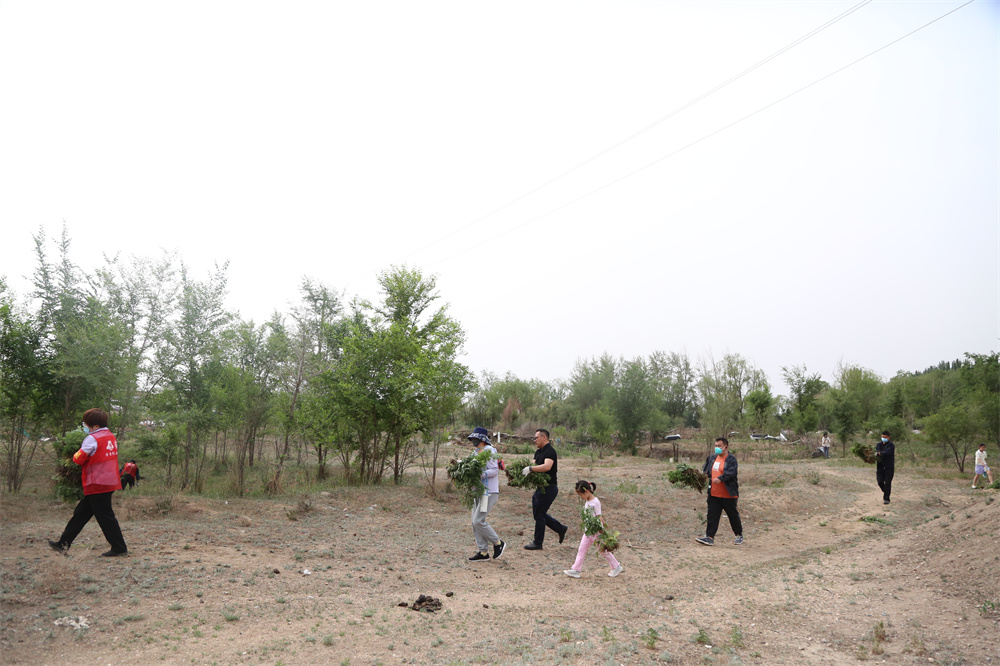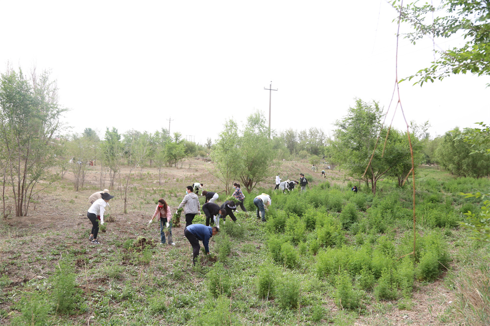党员干部积极发扬不怕苦、不怕累的劳动精神,徒手拔草、捡拾枯枝、搬运杂草……劳动过程中,大家分工协作,团结互助,撸起袖子加油干,人人争先锋,个个干劲足。经过大家的努力,湿地公园近6亩地的蒿草被清理干净,累计清理蒿草近3000斤。