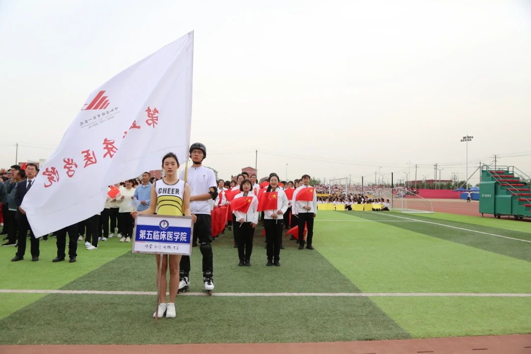 开幕式上,国旗护卫队、仪仗队、裁判员队伍、各学院方阵依次入场。第五临床医学院的方阵由院领导、职工代表和学生代表共同组成,他们身着统一的服装,迈着整齐有力的步伐,精神饱满地入场。他们的口号嘹亮,展现出了第五临床医学院团结奋进、积极向上的精神风貌,赢得了看台上观众的阵阵喝彩。
