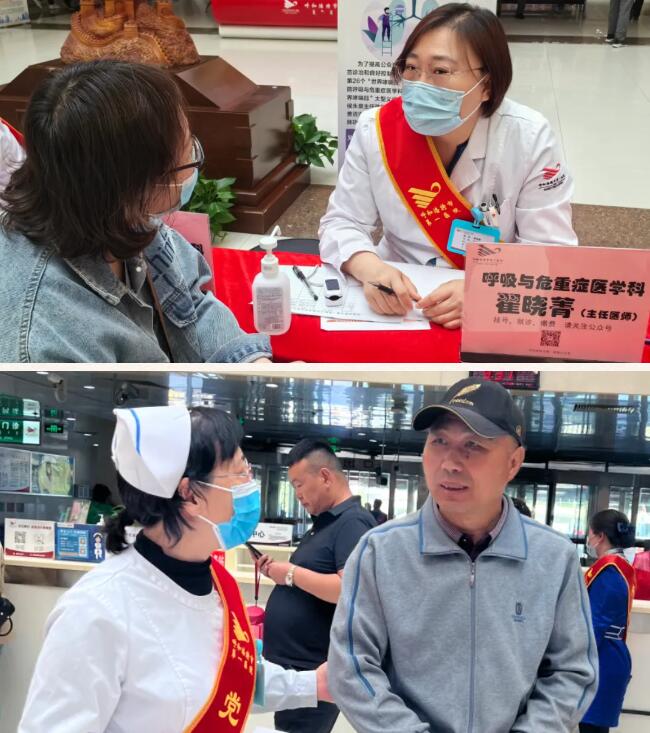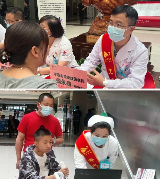 活动现场,呼和浩特市第一医院党委委员、副院长郝灵芳,党委委员、副院长包立道,第一党支部书记席文琪,呼吸与危重症医学科主任侯永泉,陈璞莹教授,副主任王飞、张华等医护人员齐聚,开展了内容丰富、形式多样的义诊活动。