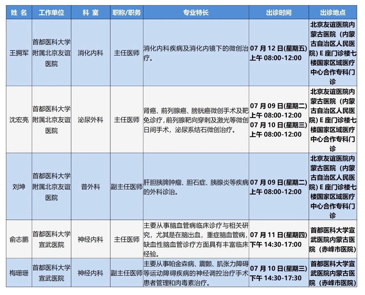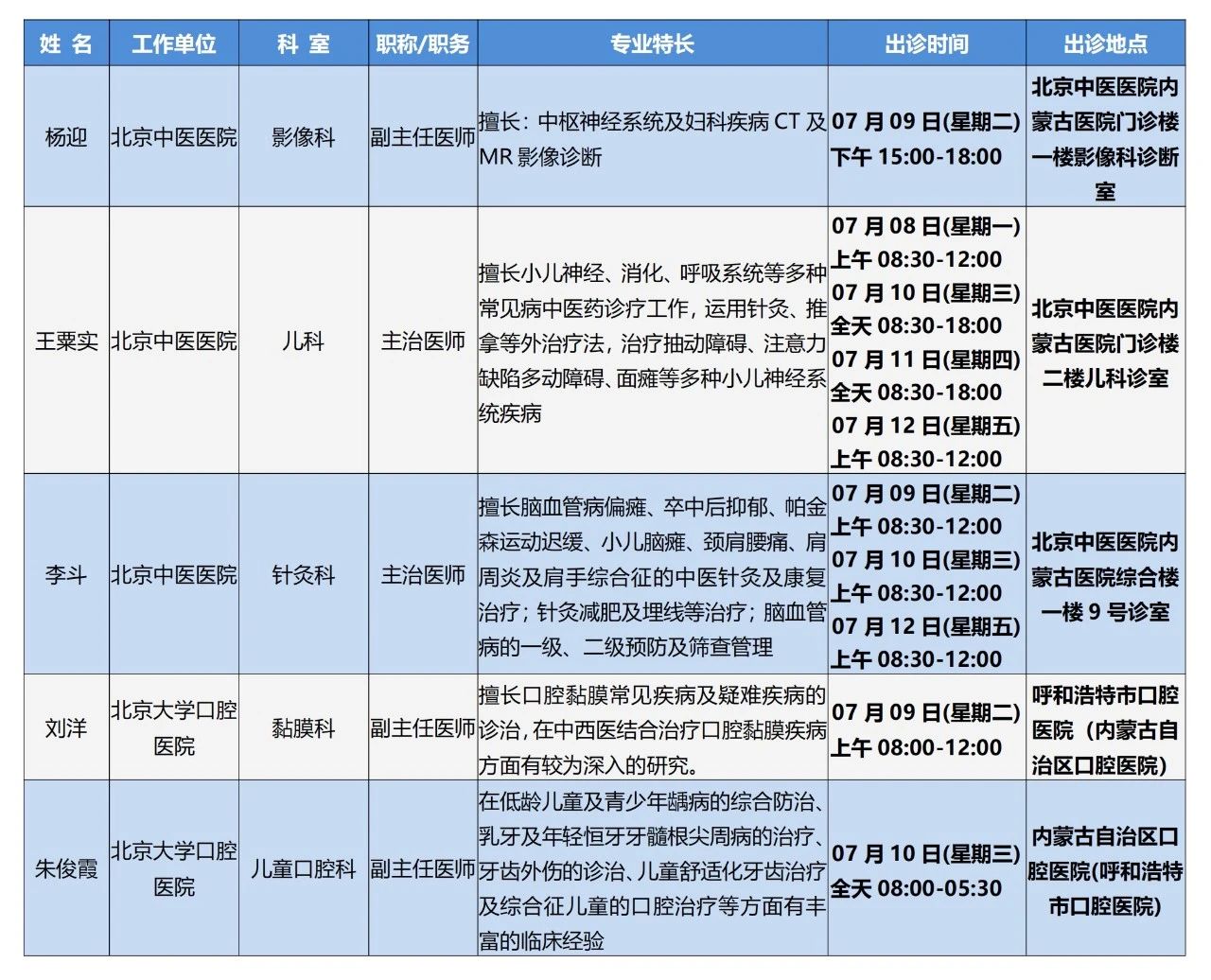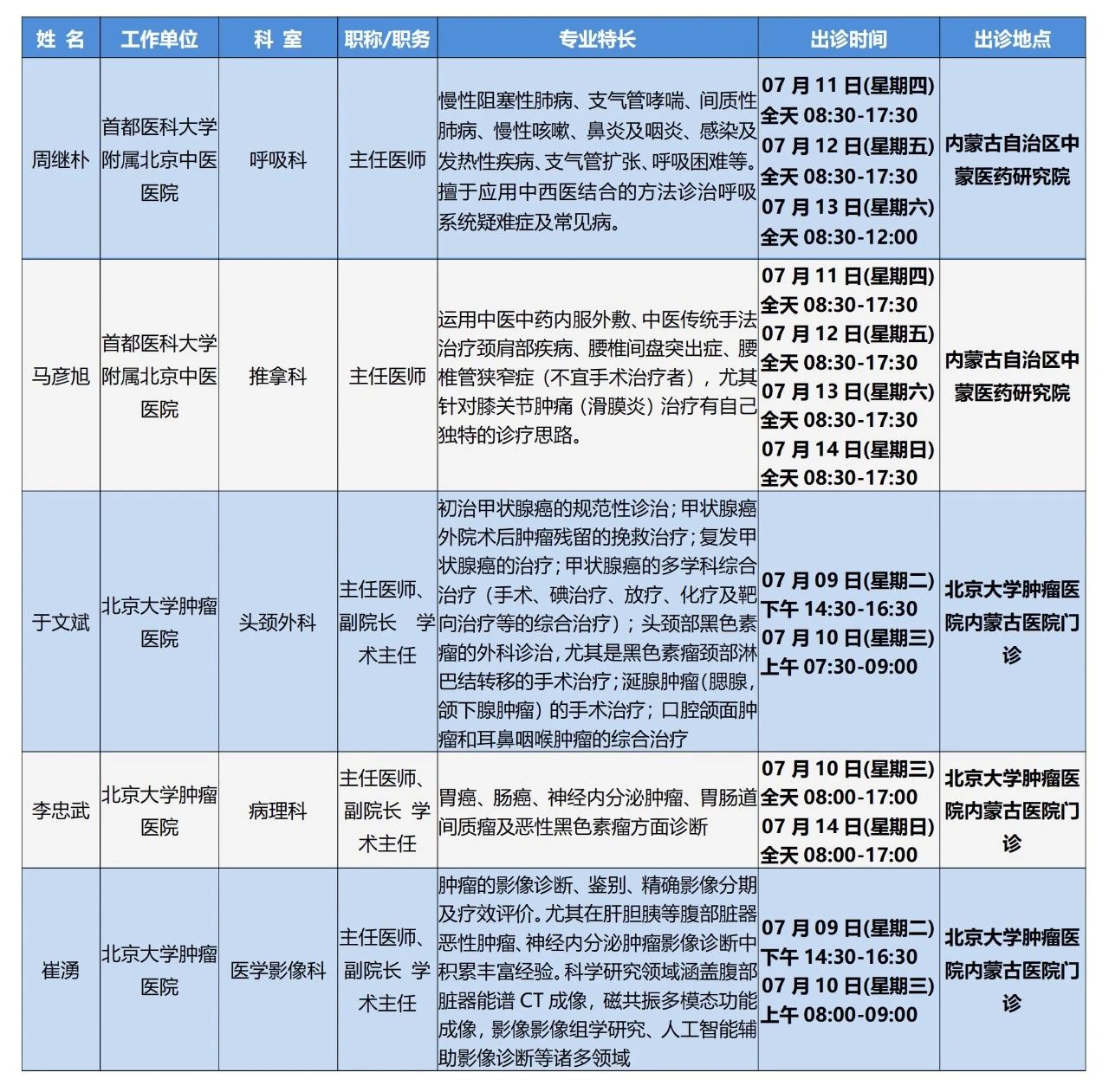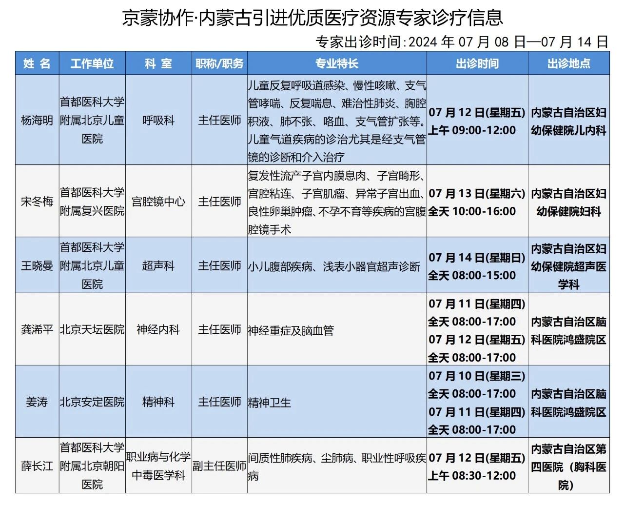 “京蒙协作”|本周北京协作医院专家出诊安排