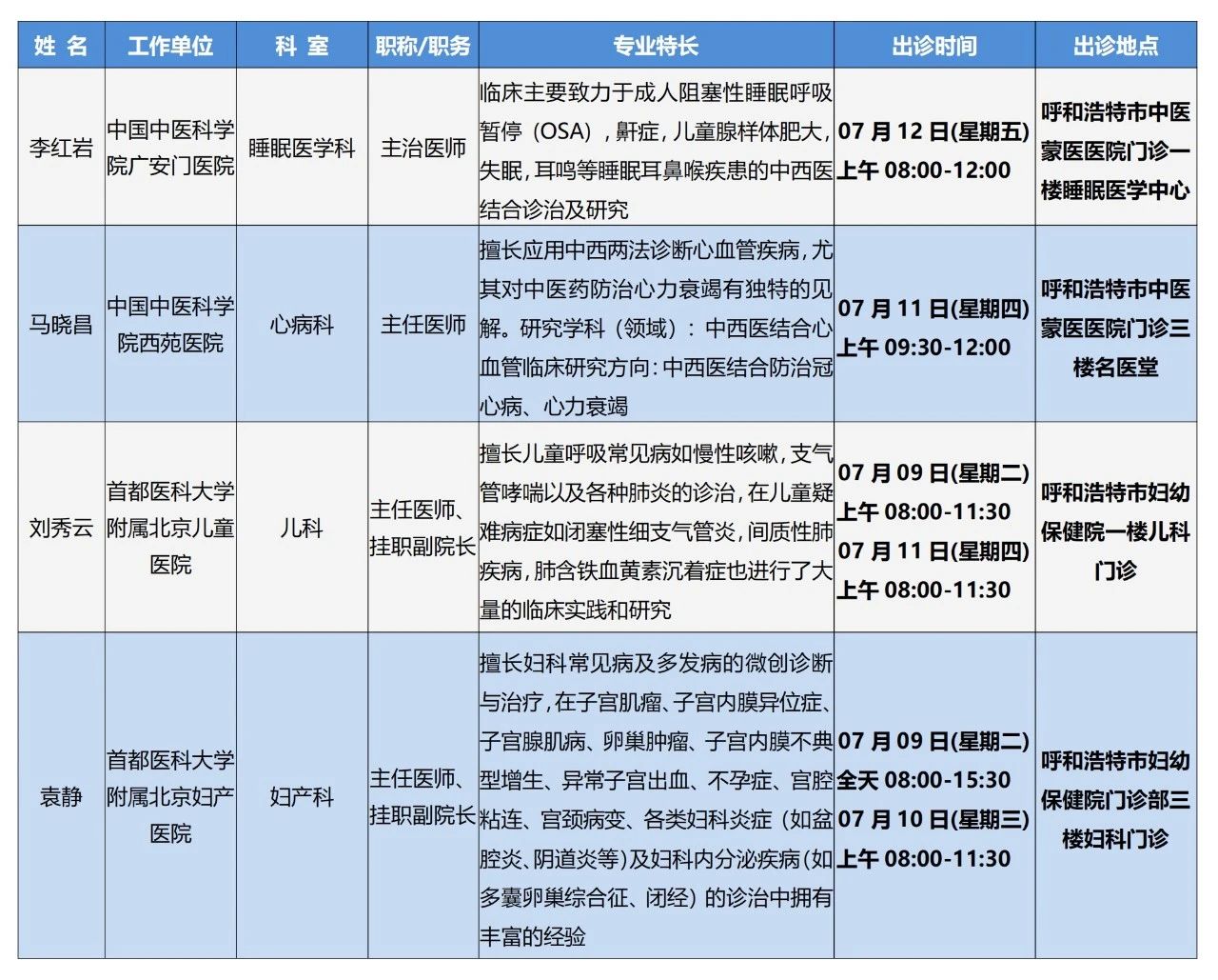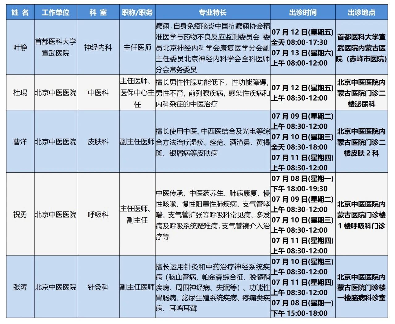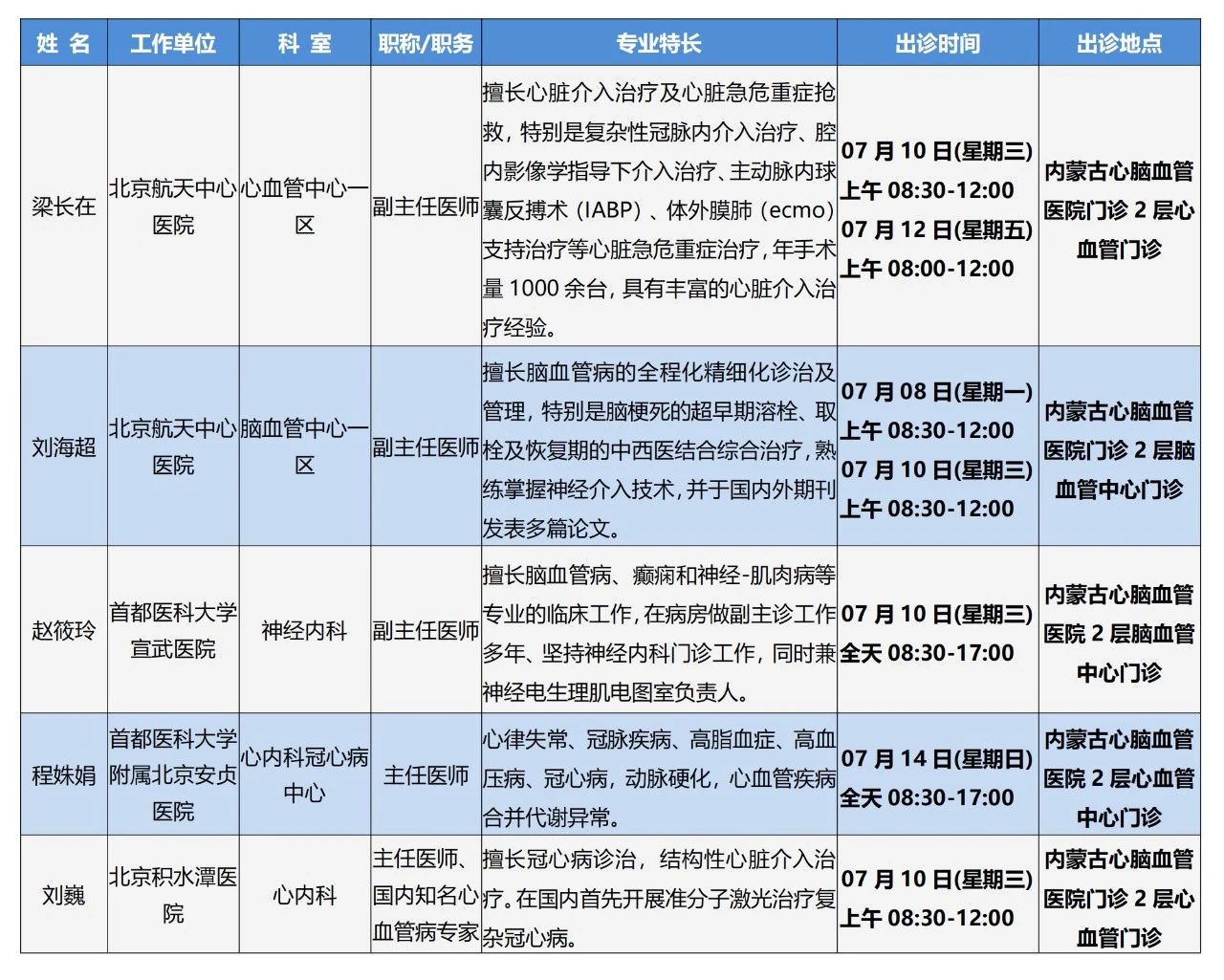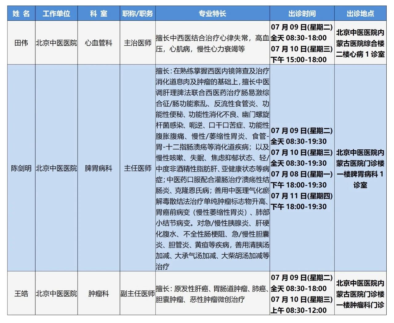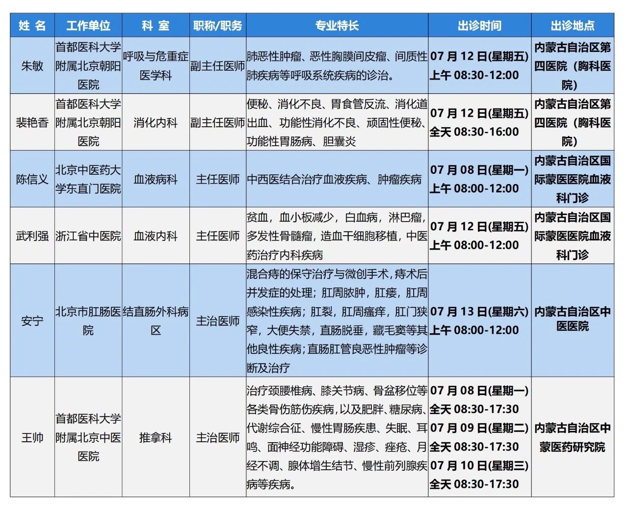 “京蒙协作”|本周北京协作医院专家出诊安排