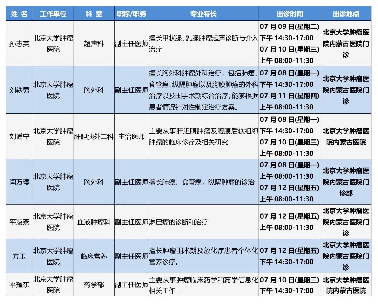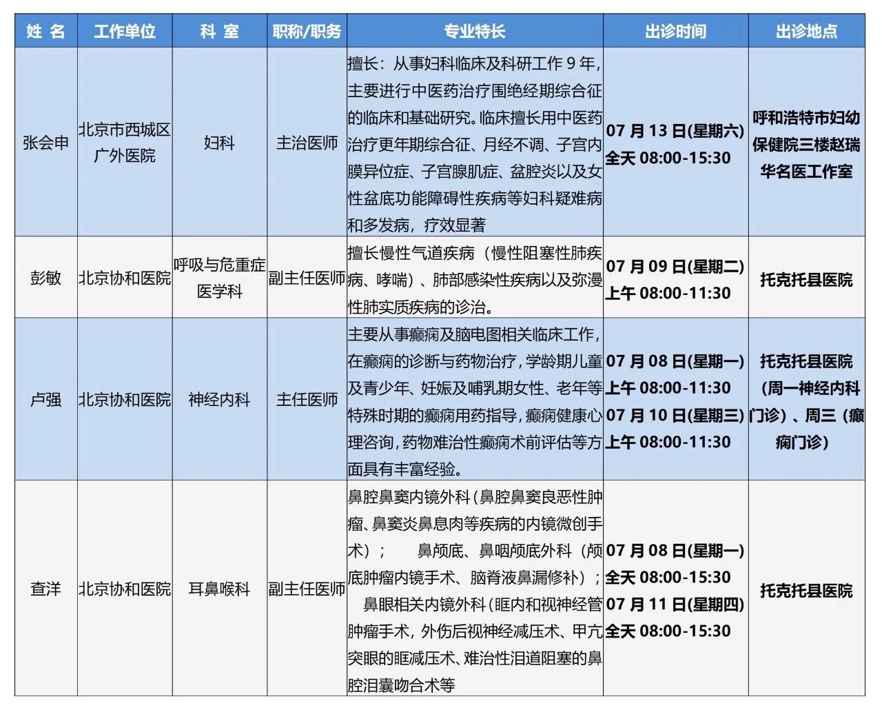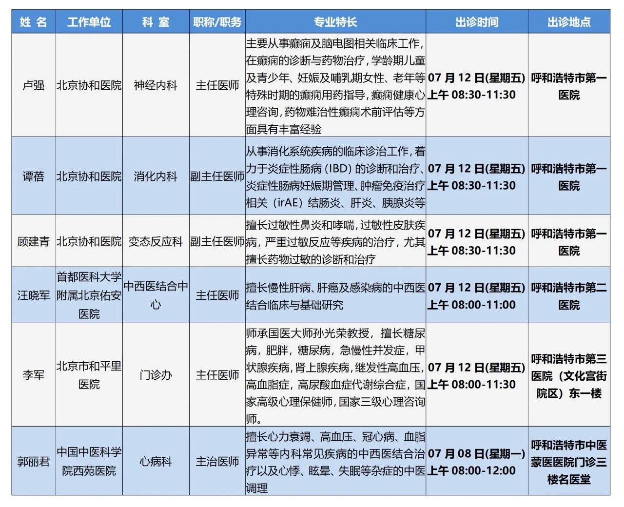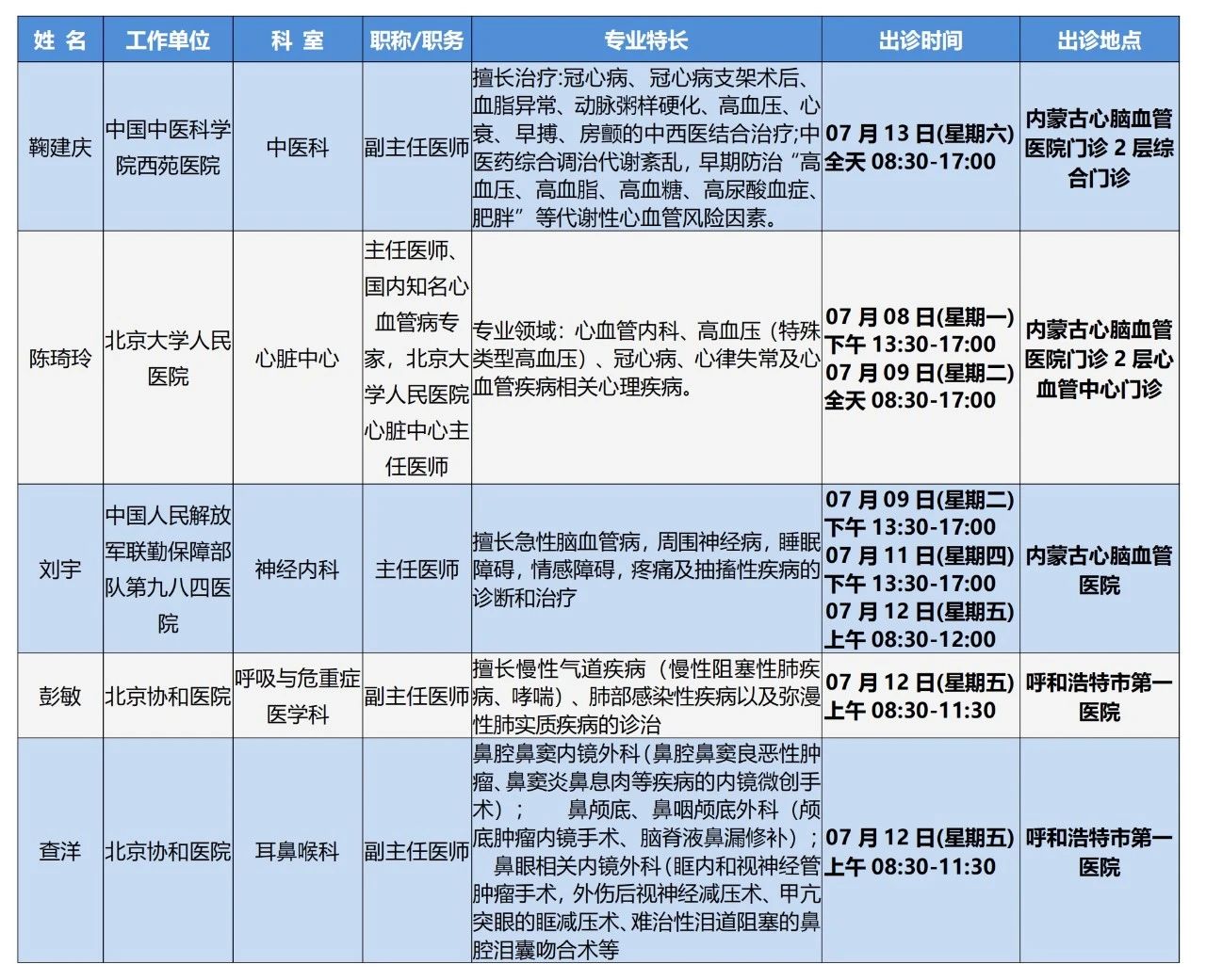 “京蒙协作”|本周北京协作医院专家出诊安排