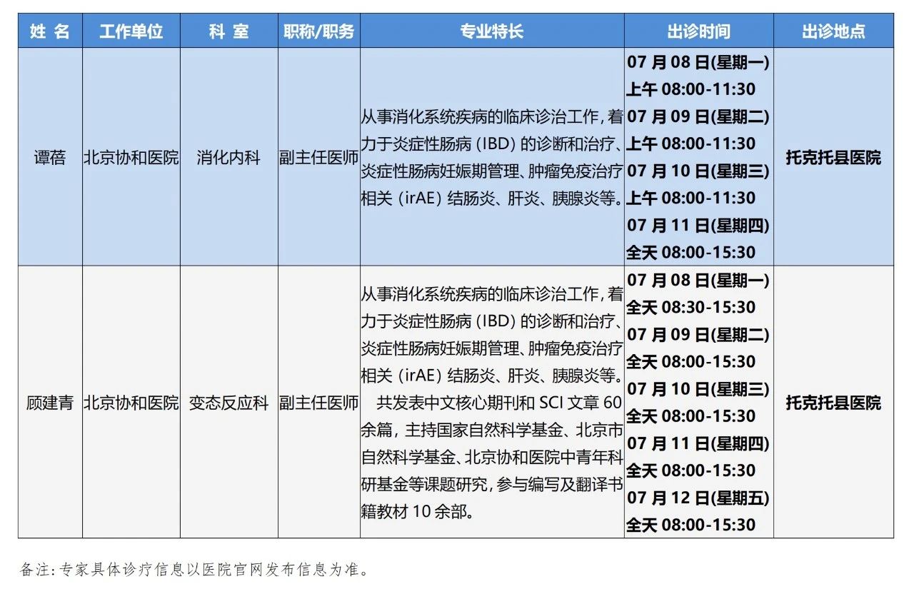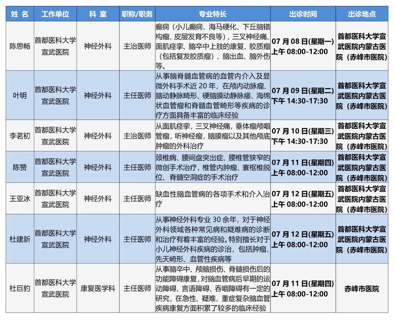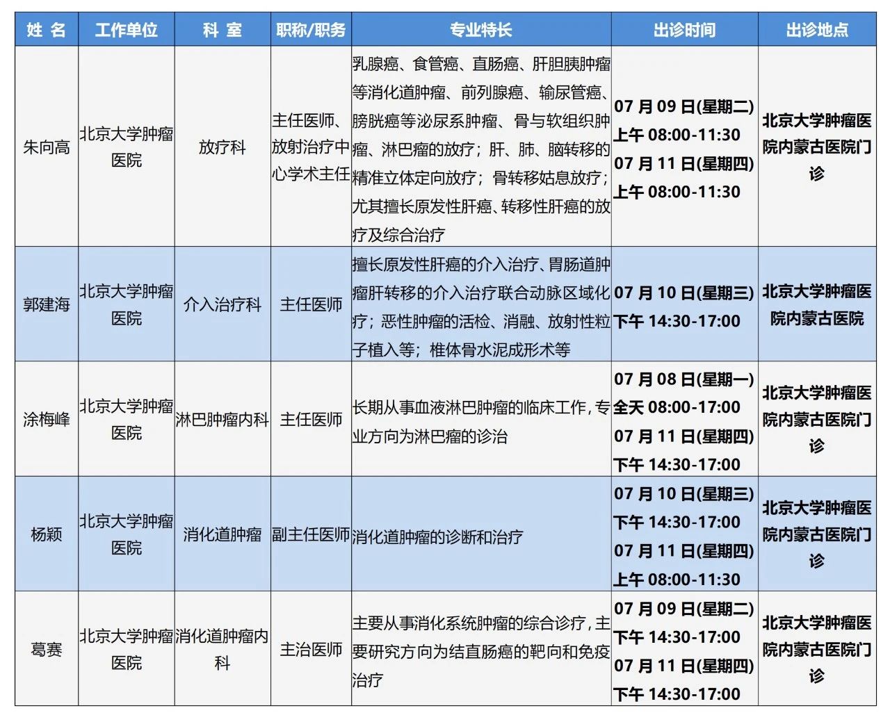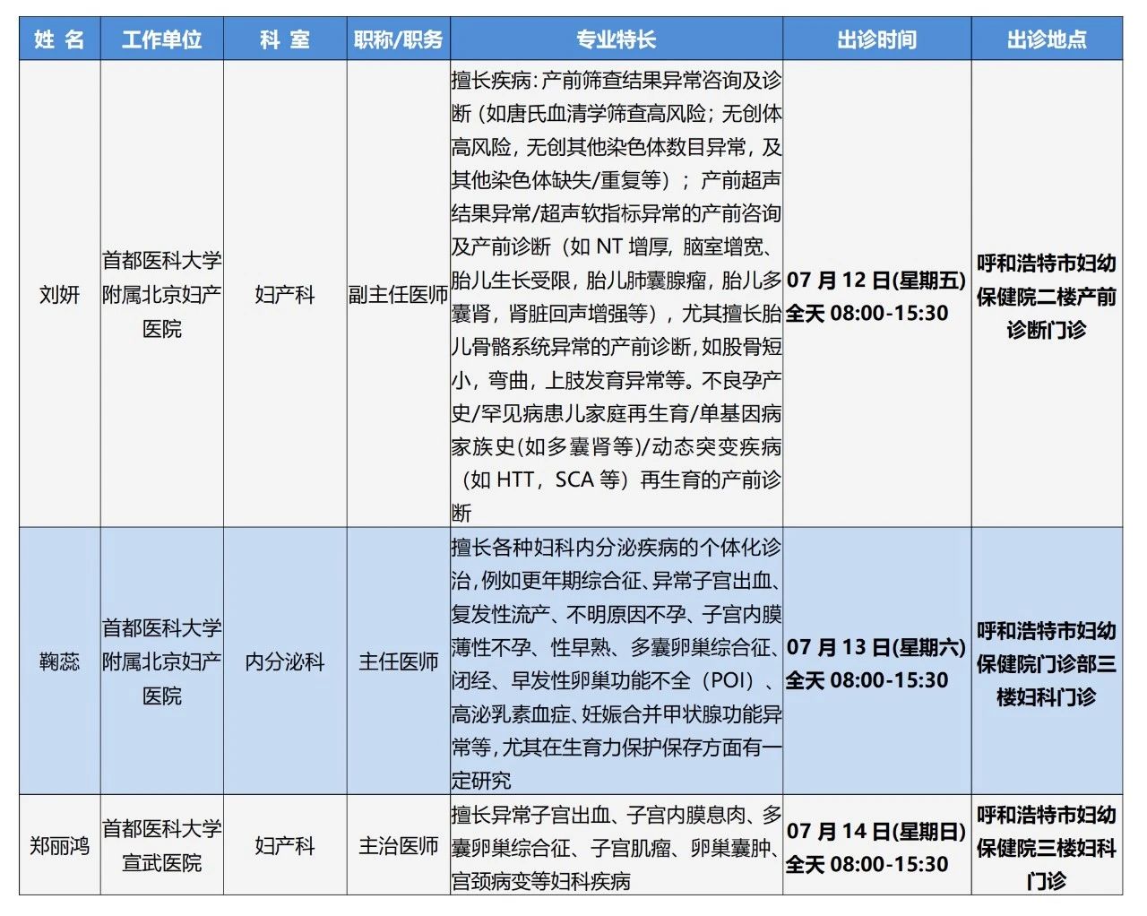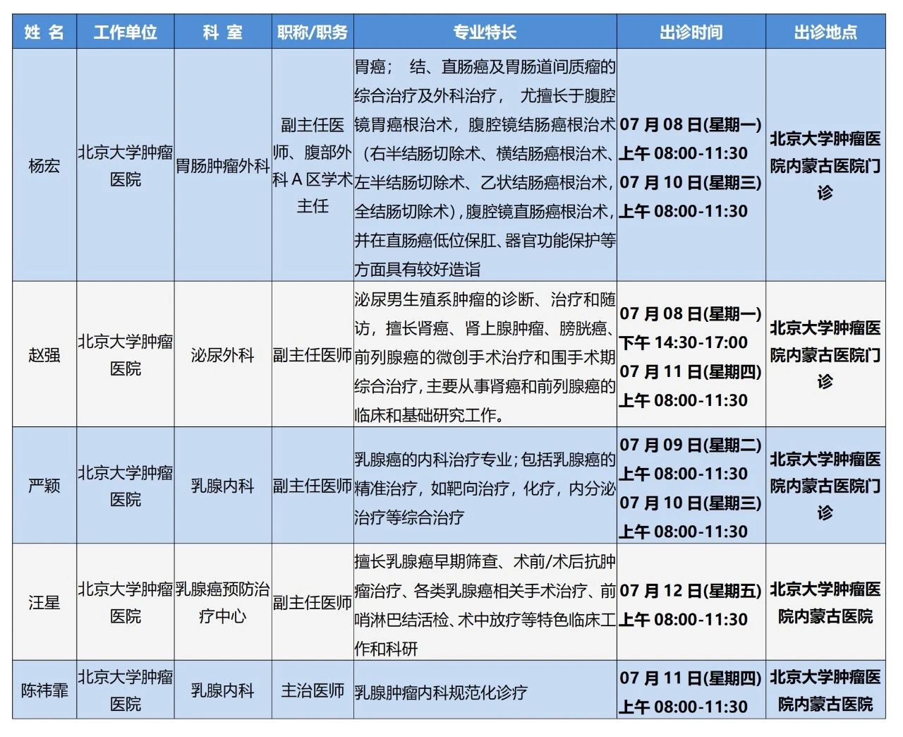 “京蒙协作”|本周北京协作医院专家出诊安排