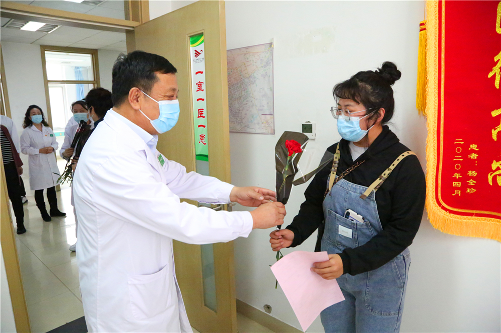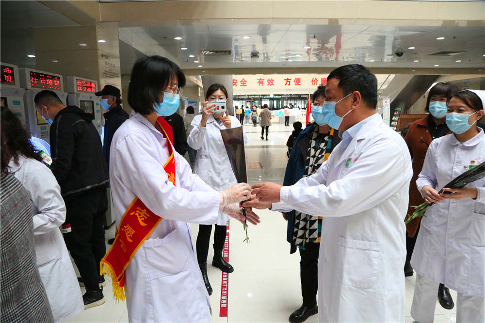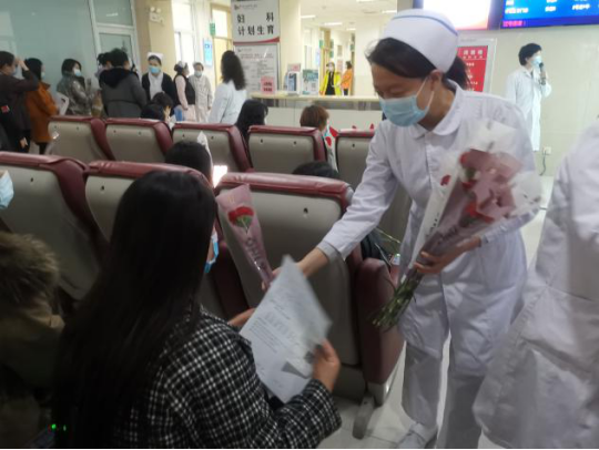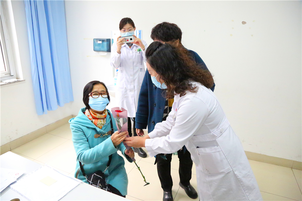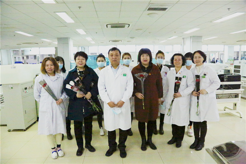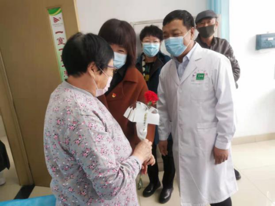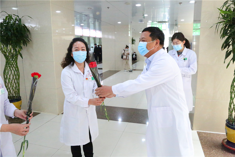 为庆祝“三八”国际妇女节,激励医务人员的工作热情,体现我院对医务工作者的关爱与重视,2021年3月8日上午9:30,门诊部工会小组牵头,党委书记李恒善和工会主席嘎勒登玛代表院领导,为门诊各科室的医务人员及现场的女性患者朋友们,送来了鲜花和节日的祝福与问候,大家感受到了领导的热情与关爱,在这个充满温暖与爱的医院里工作、就医,是一件多么幸福的事儿啊!