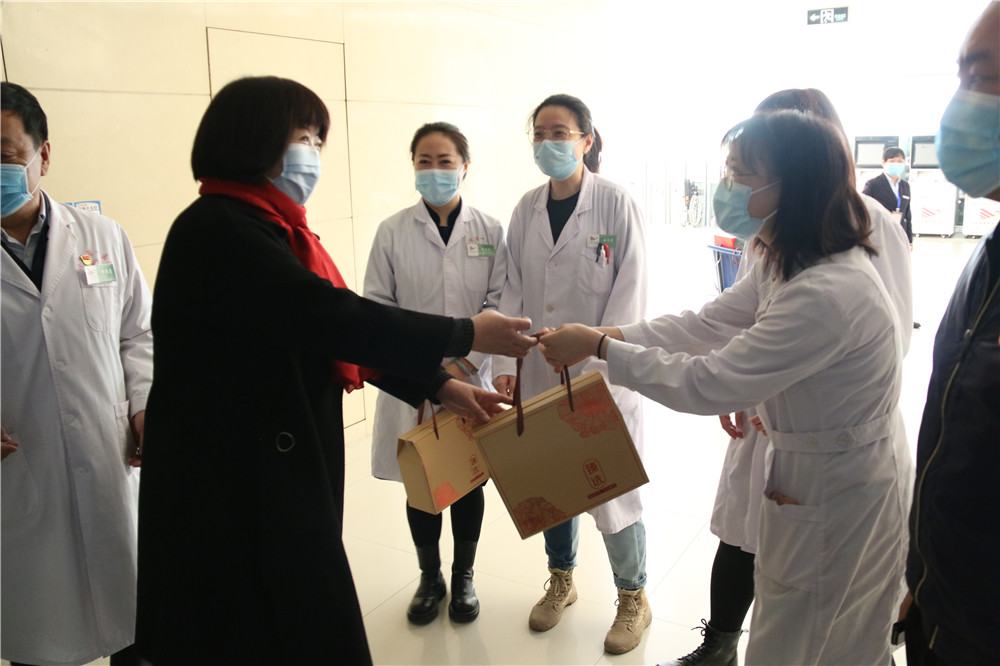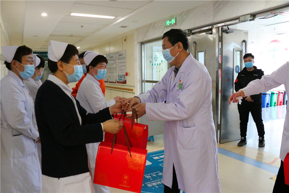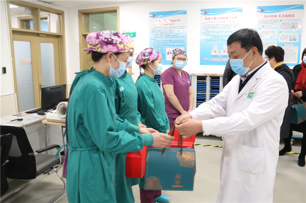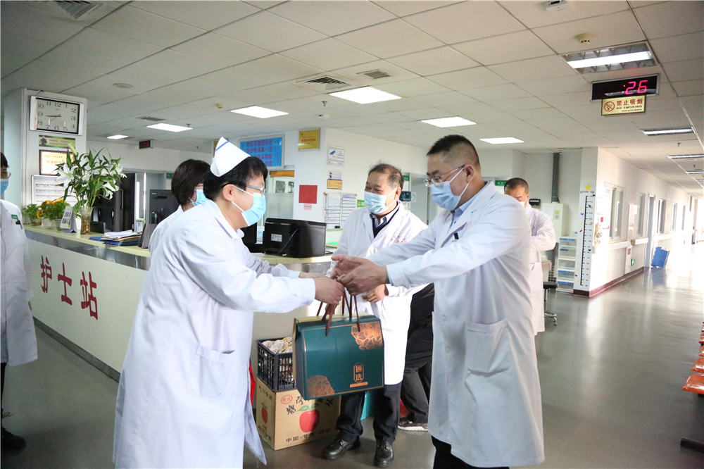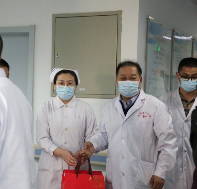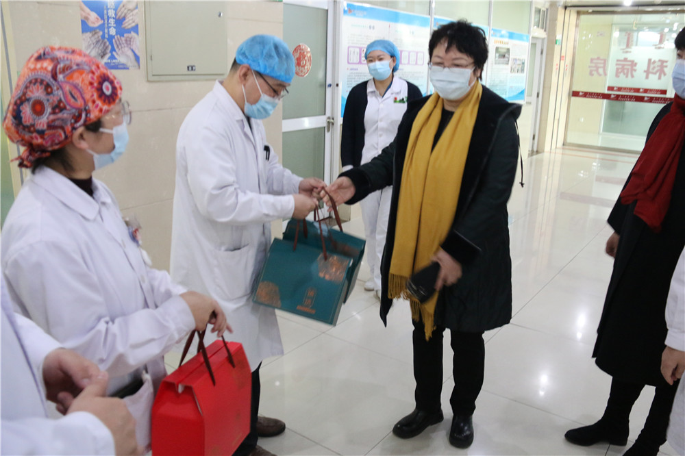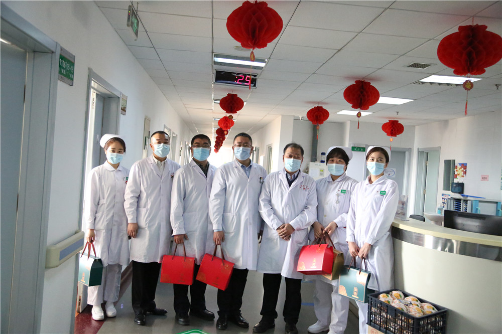 2021年春节即将来临之际,2月10日上午,院领导班子带领相关职能科室负责人,深入医院各科室看望慰问工作人员,为他们送上节日慰问品和新春的问候与祝福。