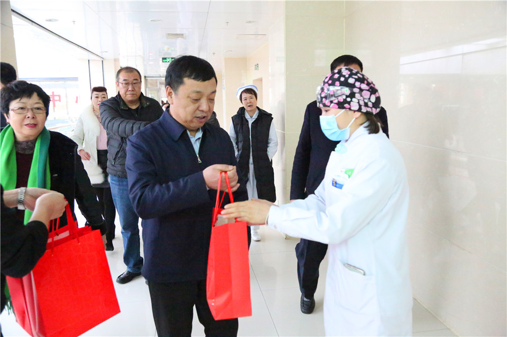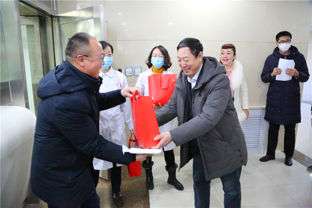 2020年1月23日,在新春佳节来临之际,院党委书记、院长李恒善带领院领导班子成员及相关科室负责人一行亲切看望慰问了我院坚守在一线岗位的医务人员,为他们送去新春的祝福和诚挚的问候。