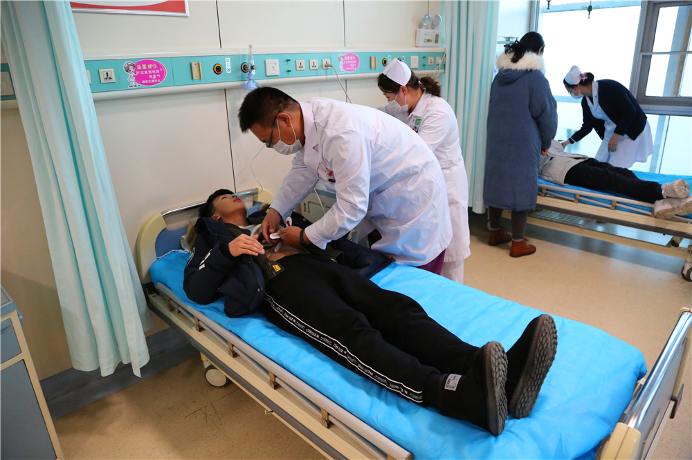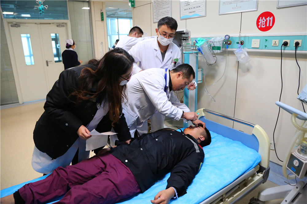 16:10,患者先后进入急诊大厅,乌云塔娜副科长、李义主任指挥分组,周丽琴主任、刘永杰护士长协助,医生护士各负其责接诊、登记、分诊(按病情轻、中、重贴标记),保证危重患者得到优先救治。2名重症患者进入抢救红区,给予吸氧、心电监护、输液、洗胃、留取标本等治疗,其中1名病情较重,需要行血液净化治疗,由护理部总护士长武素林陪检,护士郝建强和潘争一携带转运设备将患者送往血液净化中心进行血液透析;其他3名患者进入黄色留观室进行救治(催吐、吸氧、补液、生命体征监测等)。救治期间,各职能部门相互配合、相互协作,为救治工作提供坚实保障。
