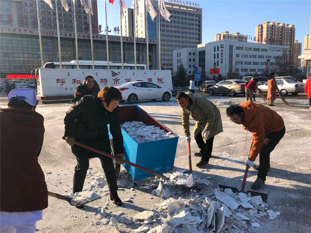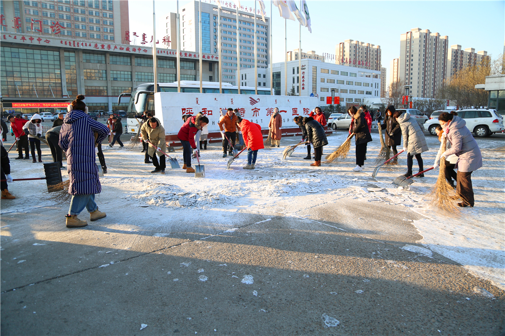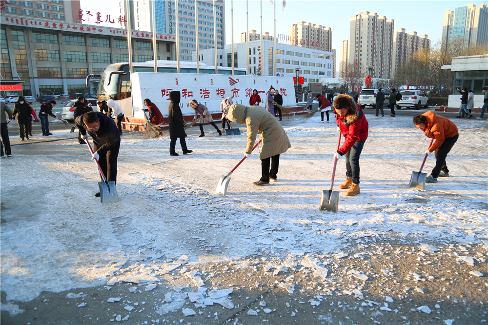 呼和浩特市第一医院组织员工扫雪铲冰 保障医患出行就诊安全
