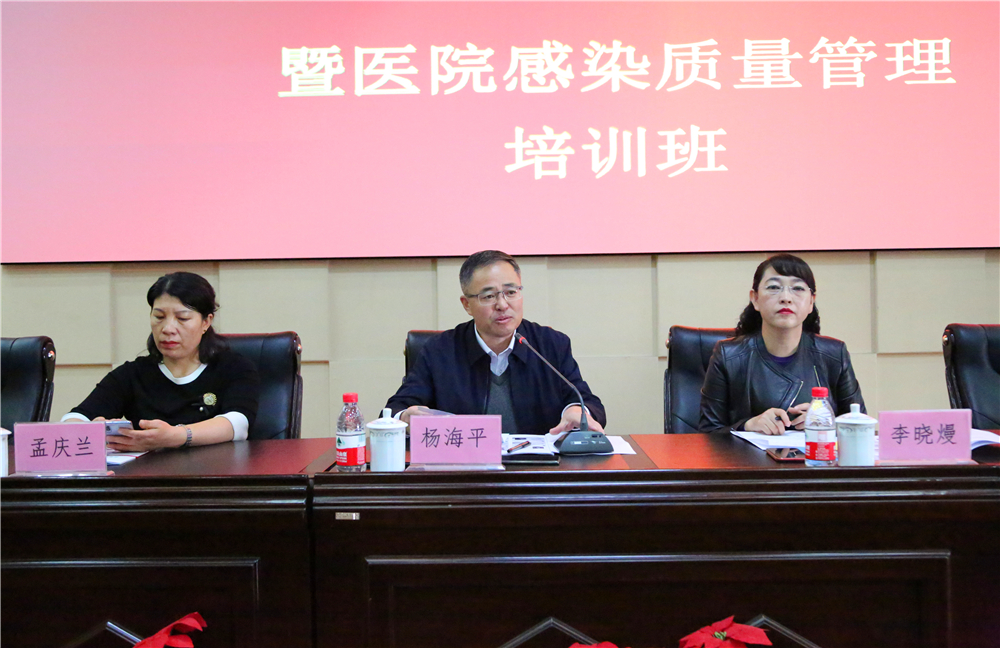 我院杨海平副院长致欢迎词,我院作为院感质控中心的挂靠单位,在各级卫生行政部门的领导下,为呼和浩特市的医院感染管理工作搭建一个学习交流平台,将国内外最新的医院感染研究进展和管理理念,新颁布的法律法规及时进行培训学习,全面推进呼和浩特市的医院感染管理工作。