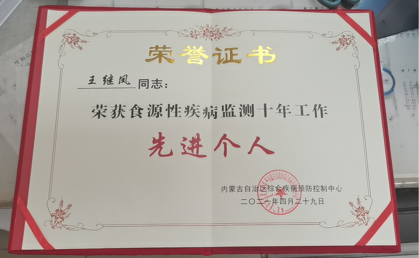 由于食源性疾病监测工作成绩突出,王继凤同志连续几年受自治区疾控中心邀请,在内蒙古食品安全风险监测培训会上就哨点医院食源性疾病监测工作做经验交流;多次作为自治区优秀哨点医院代表参加国家疾控中心举办的全国食品安全风险监测培训班。
