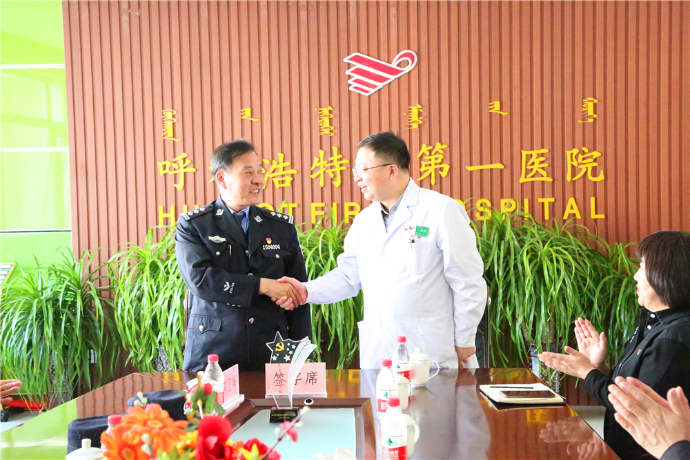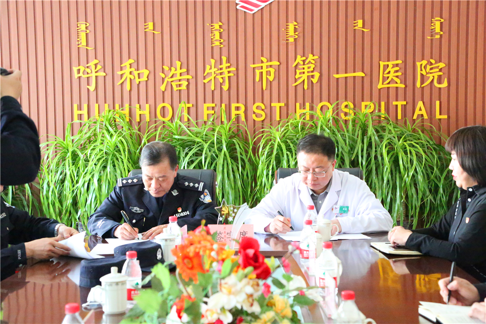 为深入贯彻落实自治区卫健委与自治区监狱管理局《关于印发内蒙古自治区地方公立医院对口支援监狱系统医疗机构工作方案的通知》《呼和浩特市卫生和计划生育委员会关于印发呼和浩特市地区公立医院对口支援监狱系统医疗机构工作方案的通知》等文件精神,2021年4月20日上午,在呼和浩特市第一医院行政楼五楼会议室举行我院与内蒙古呼和浩特第二监狱对口支援合作签约仪式,我院党委副书记 院长侯煜、党委委员 副院长蒲俊智、副院长田少鹏、党委委员 工会主席嘎勒登玛、总会计师刘建平及医务科、护理部、老年病内二科、宣传科等相关科室负责人,第二监狱党委委员、副监狱长李景文一行出席签约仪式。会议由院党委副书记、院长侯煜主持。