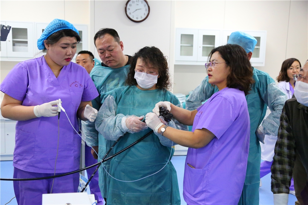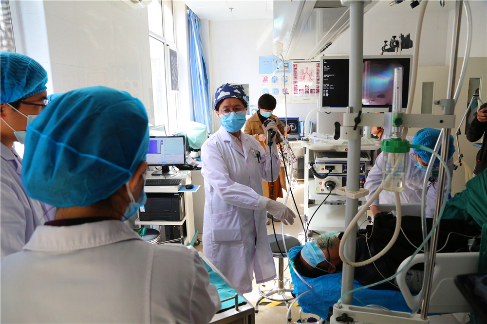 采访团接着来到我院呼吸内镜室,采访了我院呼吸与危重症医学二科陈璞莹主任,我院作为内蒙古唯一一家国家呼吸与危重症规范化建设(PCCM)呼吸介入单修基地,带动和促进了气管镜下介入技术在内蒙古地区的普及和发展,为很多疑难杂症病例解决了实际问题,切实为胸腔疾病患者带来了福音。