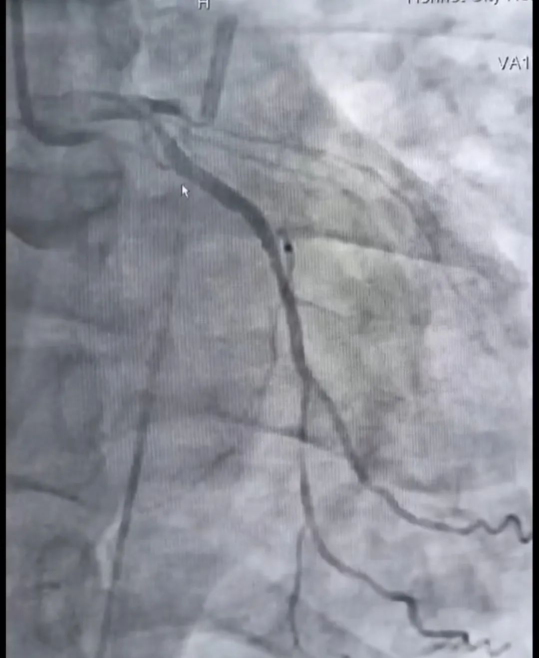 当时患者无法平卧,呈端坐位状态,因休克导致精神呈紧张、躁狂状态,随时可能因日常的一个简单动作加重心源性休克症状、诱发严重的心律失常导致死亡,完全没有办法配合手术治疗,患者命悬一线。但是在与患者家属沟通的过程中,家属治疗意愿十分积极。随后高江峰主任当机立断,联系麻醉科准备全麻下行心内科介入手术治疗,为患者争取一线生机,争取上手术台的机会。除此之外,在上台之前给予患者植入主动脉内球囊反搏(IABP),行深静脉置管术以备用临时起搏器通路,为患者的救治之路保驾护航。