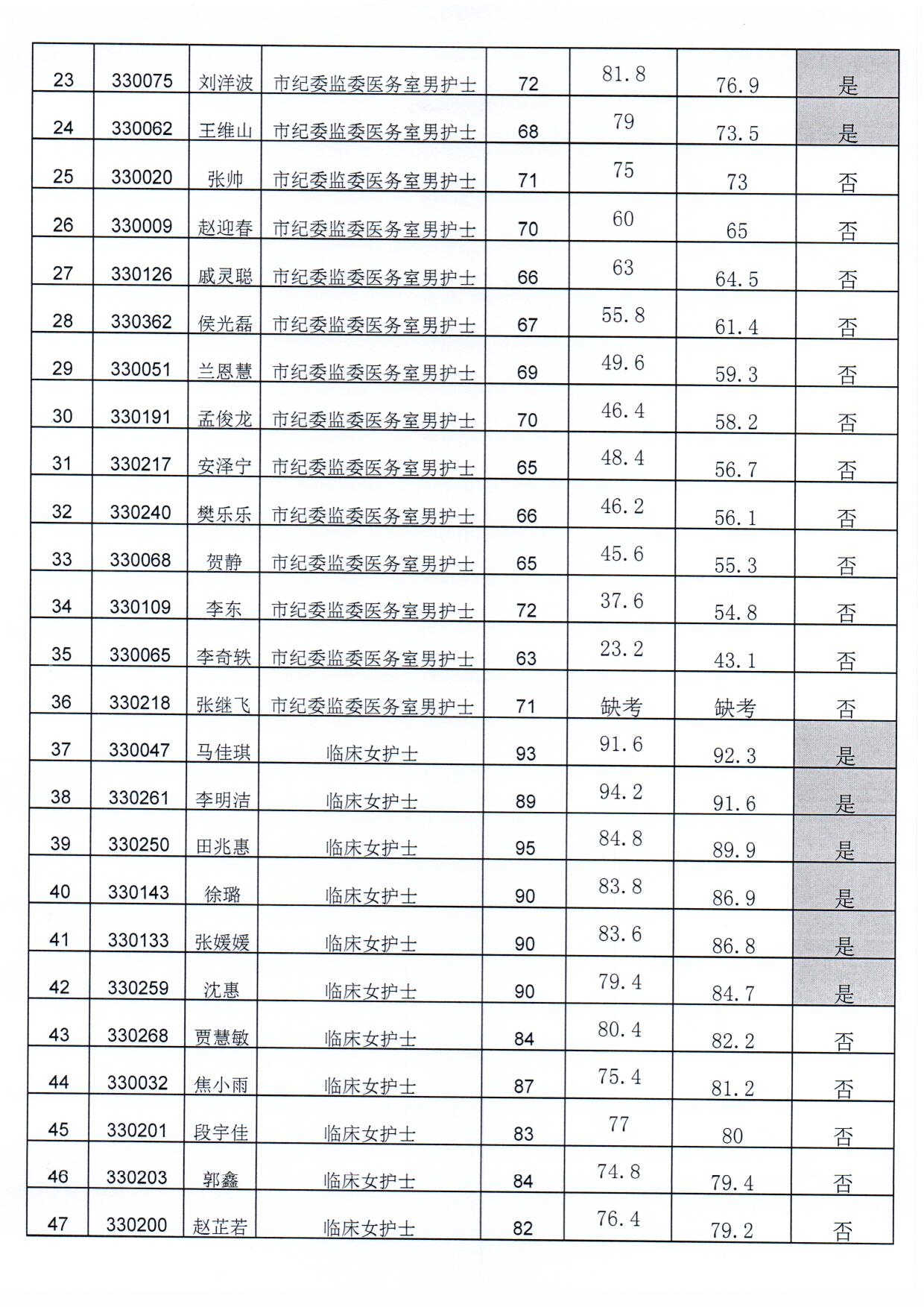 现将呼和浩特市第一医院2020年公开招聘合同制工作人员中市纪委监委医务室男护士、市纪委监委医务室女护士、临床男护士、临床女护士岗位总成绩公示如下,请报考人员及时登陆网站查询。成绩公示为期5天(包含公休日)。