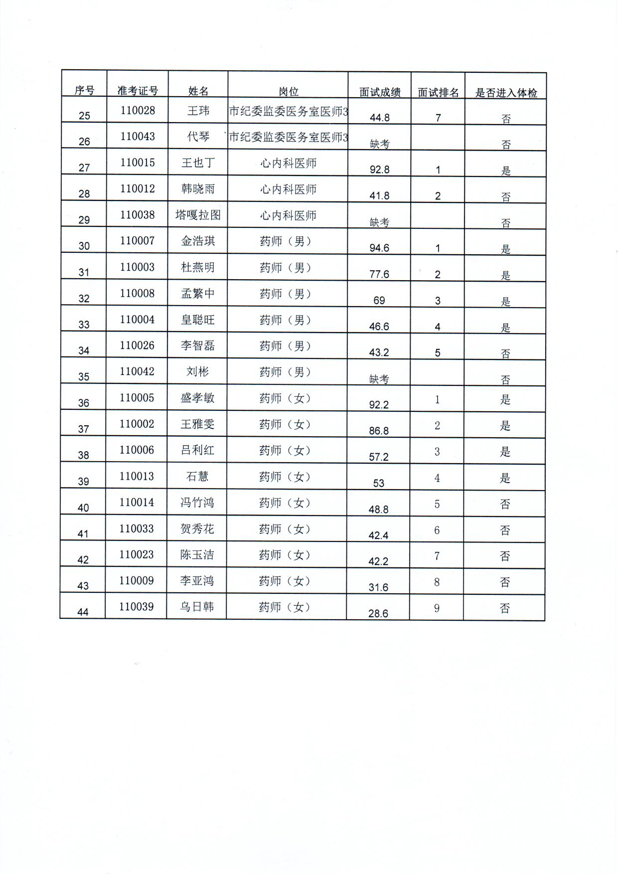 现将呼和浩特市第一医院2020年公开招聘合同制工作人员中医师、药剂师岗位面试成绩公示如下,请报考人员及时登陆网站查询。成绩公示为期5天(包含公休日)。
