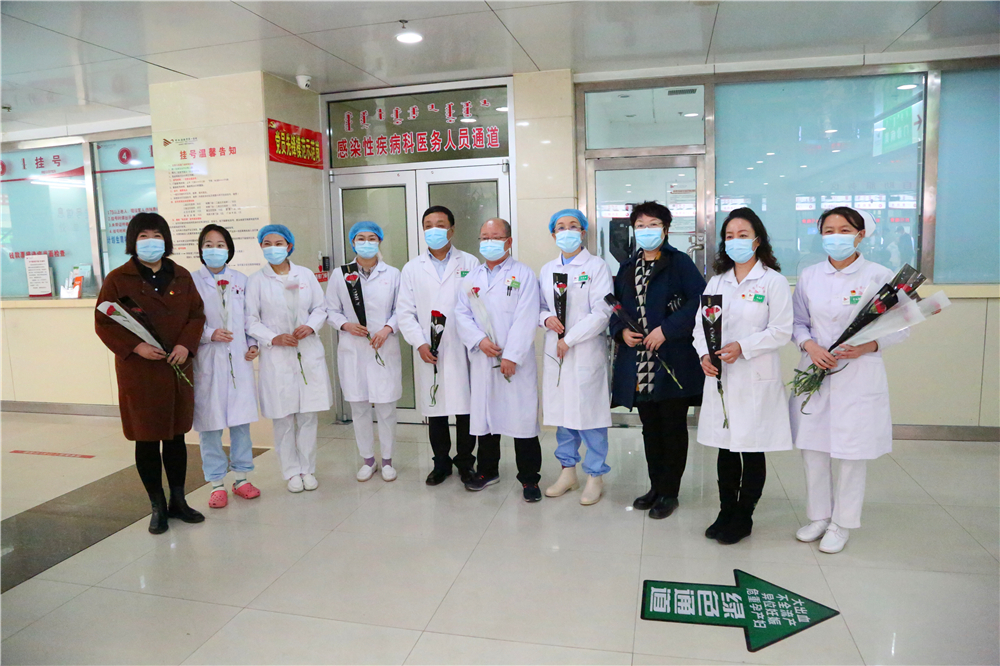 为庆祝“三八”国际妇女节,激励医务人员的工作热情,体现我院对医务工作者的关爱与重视,2021年3月8日上午9:30,门诊部工会小组牵头,党委书记李恒善和工会主席嘎勒登玛代表院领导,为门诊各科室的医务人员及现场的女性患者朋友们,送来了鲜花和节日的祝福与问候,大家感受到了领导的热情与关爱,在这个充满温暖与爱的医院里工作、就医,是一件多么幸福的事儿啊!