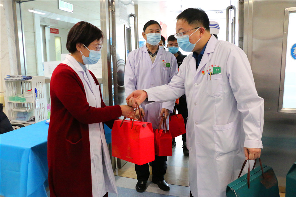 2021年春节即将来临之际,2月10日上午,院领导班子带领相关职能科室负责人,深入医院各科室看望慰问工作人员,为他们送上节日慰问品和新春的问候与祝福。