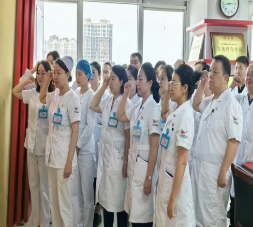 活动开始,全体党员面向鲜艳的党旗,庄严举起右拳,一起重温入党誓词。让每一位党员对象依次从自身经历和切身感受出发,结合自身成长重要节点,娓娓道来自己的入党初心和心路历程,深深地表达出对党的无限忠诚和热爱。党委书记王志强也讲述了自己入党初心以及在2022年抗疫期间的心路历程 ,感谢曾经为疫情做贡献的医护,未来继续在各自的岗位上发光,发亮,发挥党员模范先锋作用。